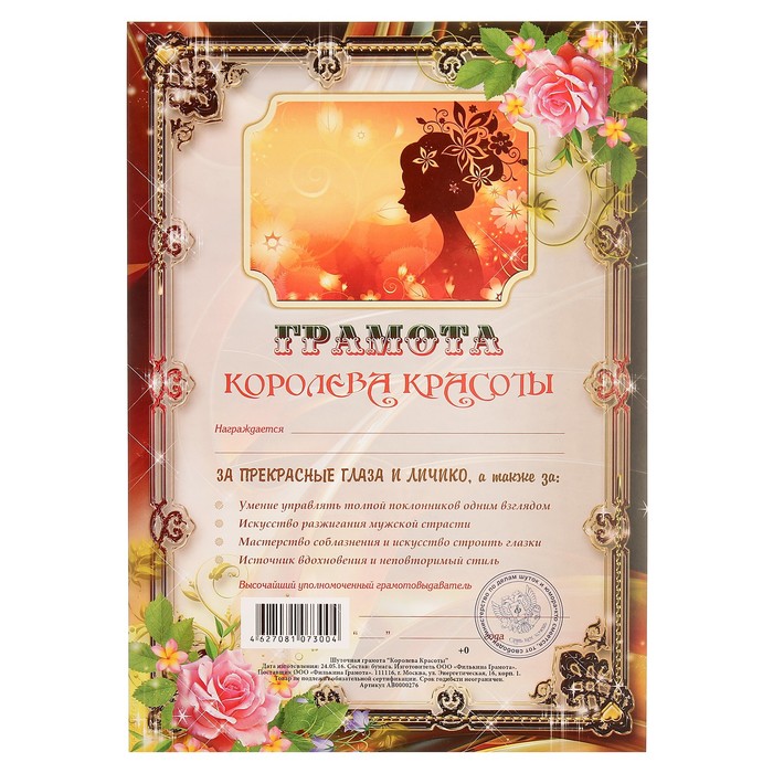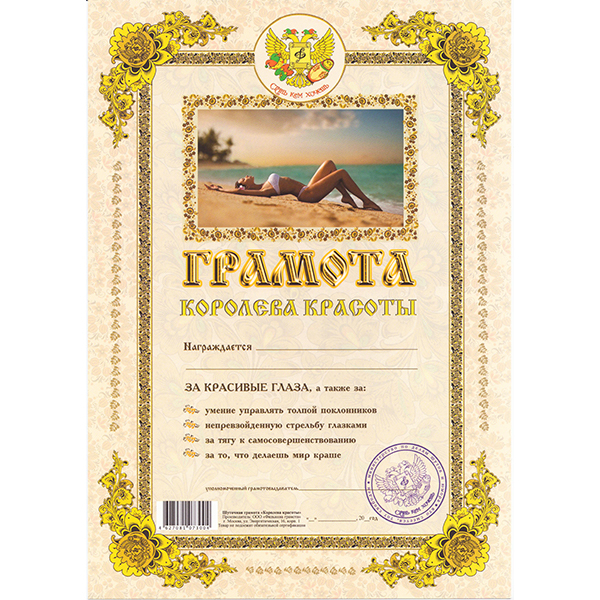 Грамота "Королева Красоты"