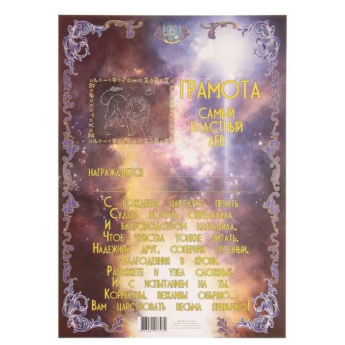 Грамота знака зодиака "Лев"