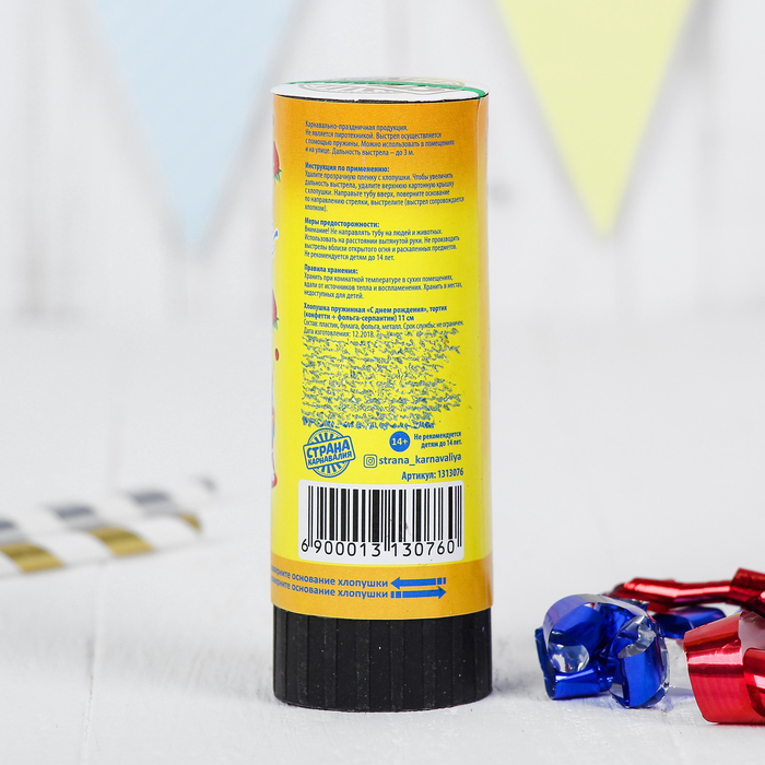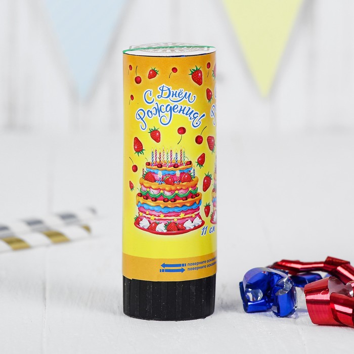 Хлопушка пружинная "С днем рождения! Тортик", конфетти, фольга, серпантин, 11 см