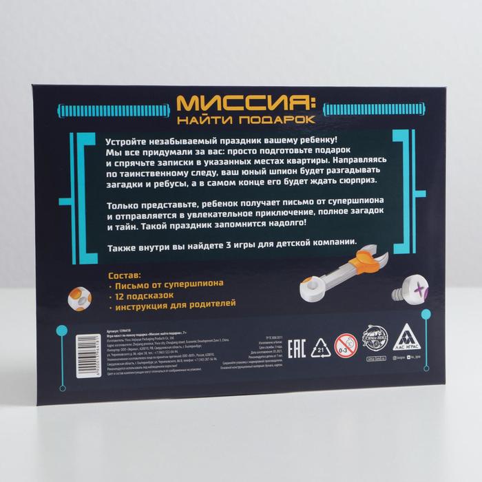 Игра-квест по поиску подарка "Миссия: найти подарок" версия 2, 7+
