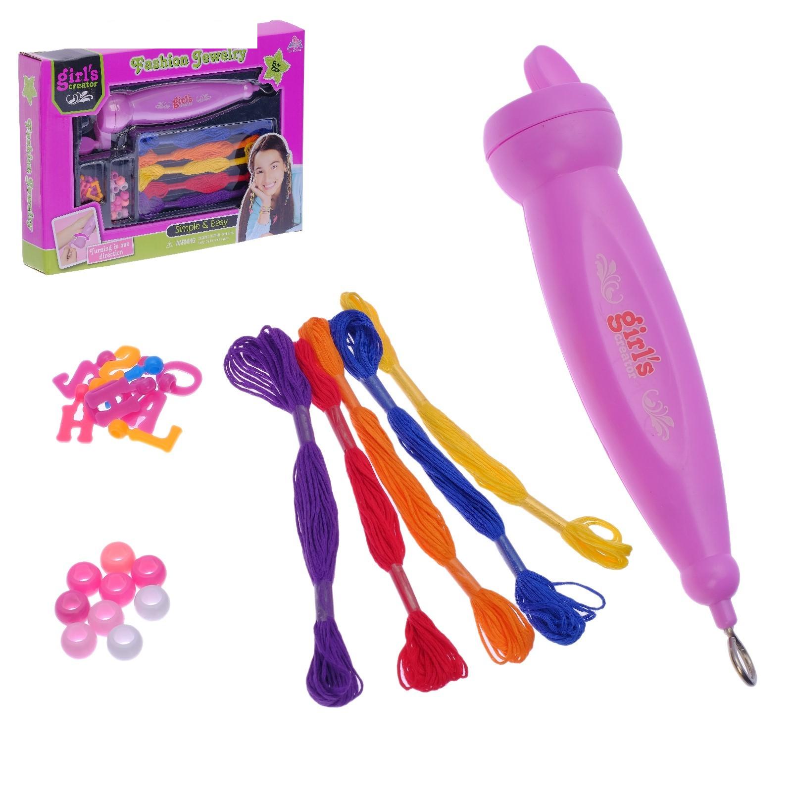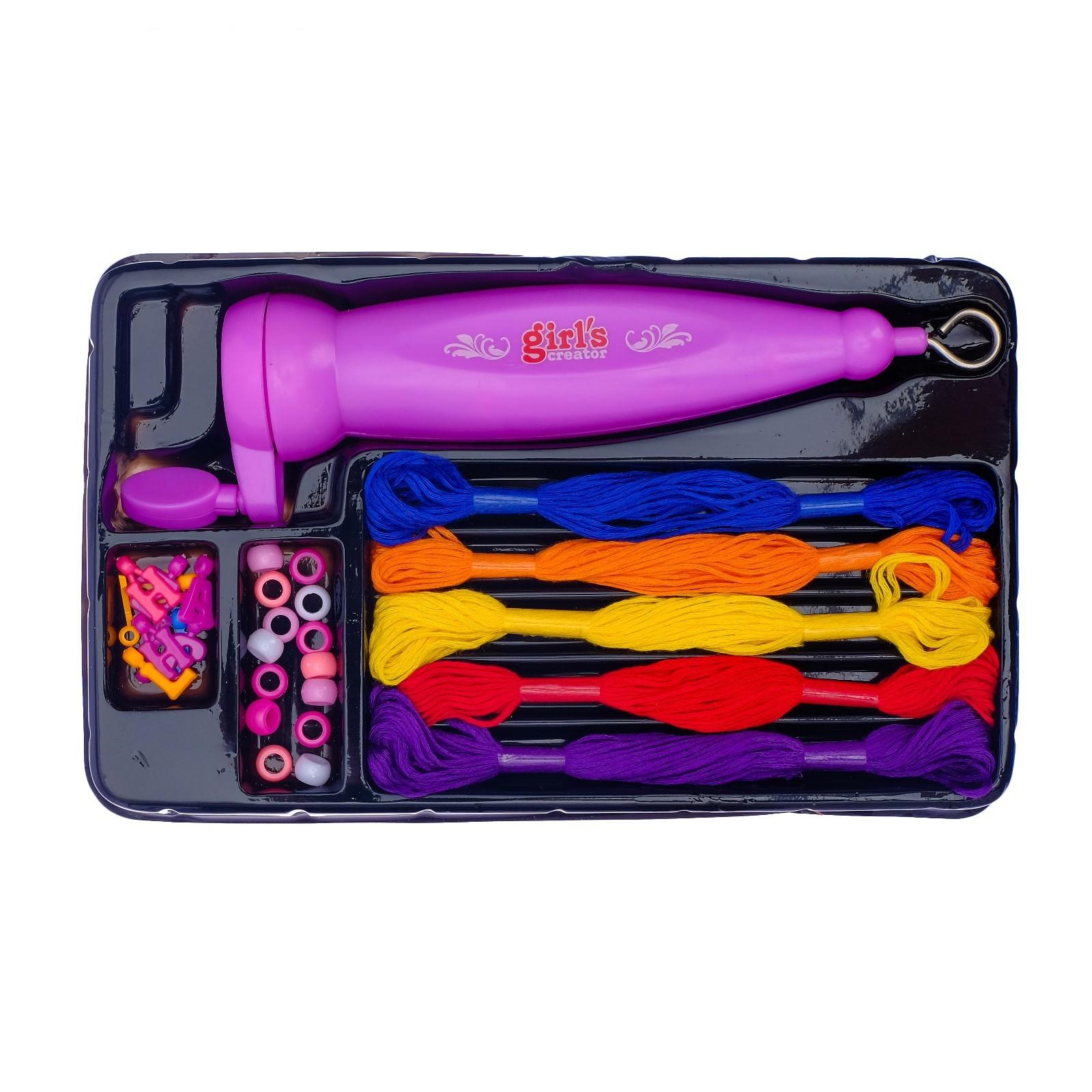 Игровой набор для создания причесок: аппарат для плетения, зажимы для волос, цветные нитки, бусинки, инструкция, БОНУС - уникальная подвеска