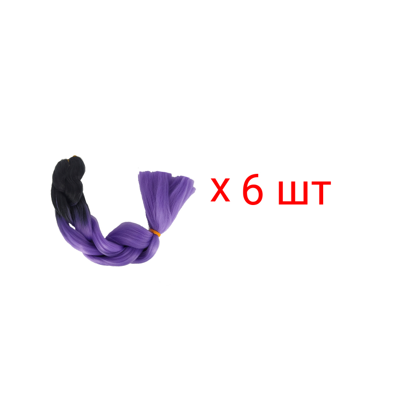 Канекалон 60 см, омбре из черного в фиолетовый (Набор 6 шт.)
