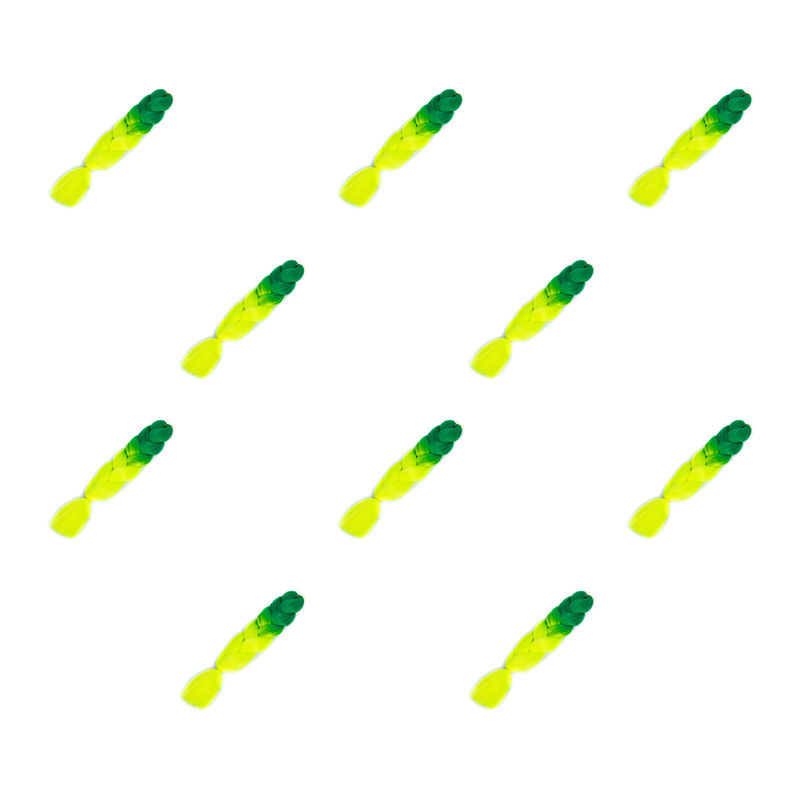 Канекалон 60 см, омбре из зеленого в неоново-зеленый (Набор 10 шт.)