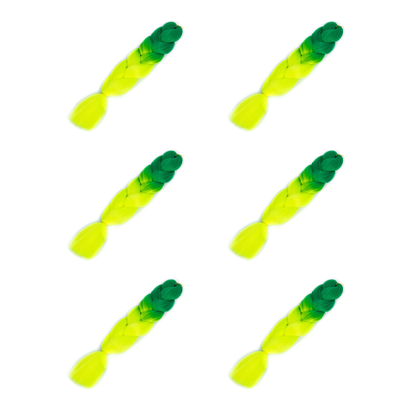 Канекалон 60 см, омбре из зеленого в неоново-зеленый (Набор 6 шт.)