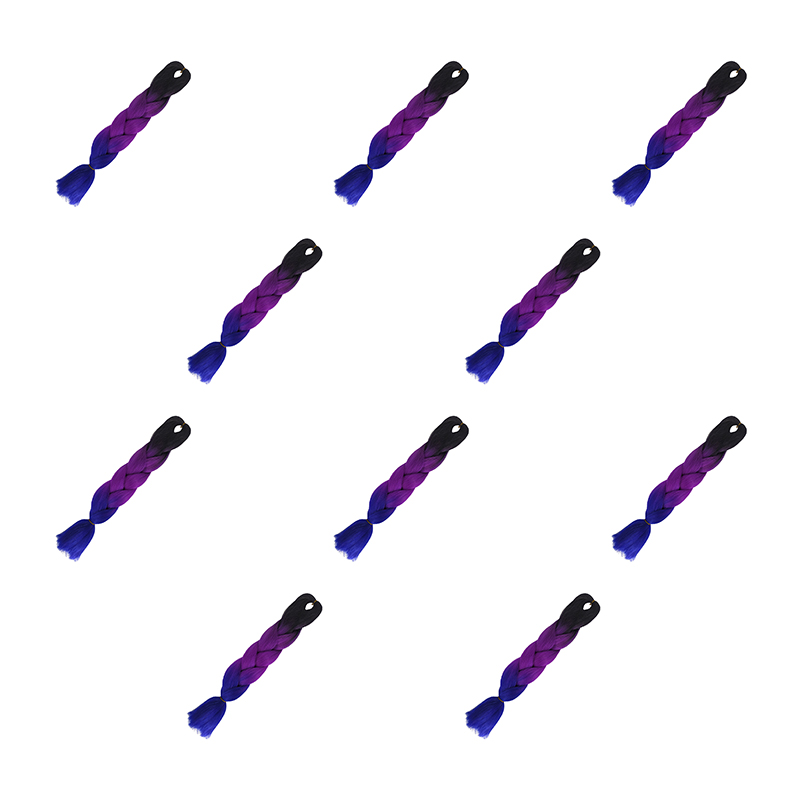 Канекалон коса 60 см, 3 цвета: черный, фиолетовый, синий (Набор 10 шт.)