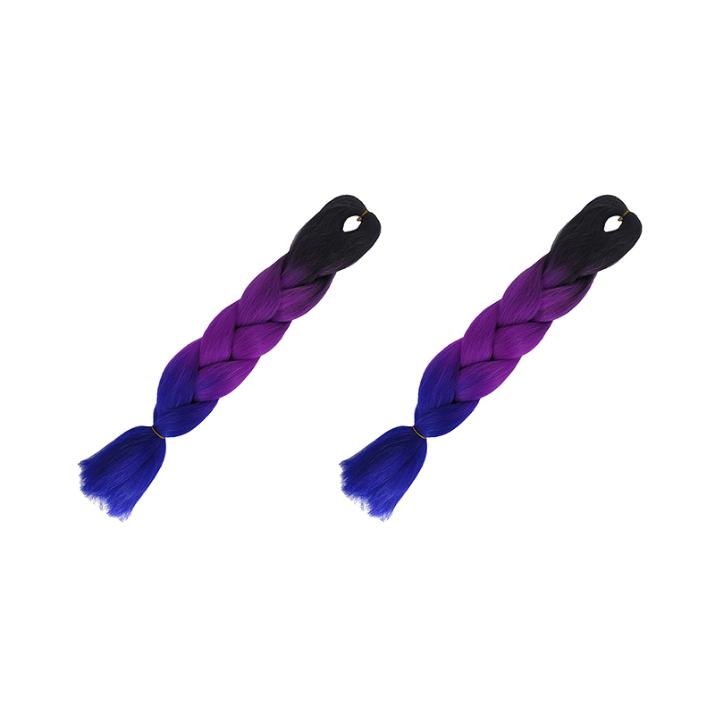 Канекалон коса 60 см, 3 цвета: черный, фиолетовый, синий (Набор 2 шт.)