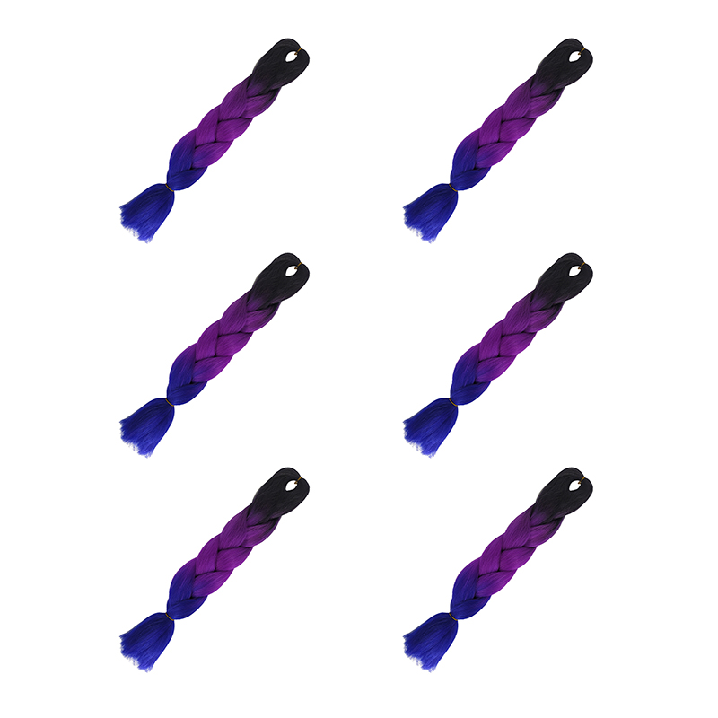 Канекалон коса 60 см, 3 цвета: черный, фиолетовый, синий (Набор 6 шт.)