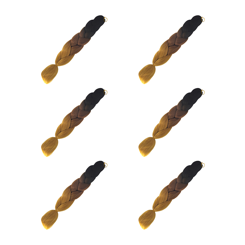 Канекалон коса 60 см, 3 цвета: черный, каштановый, светло-каштановый (Набор 6 шт.)