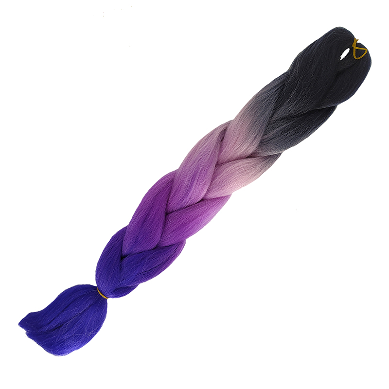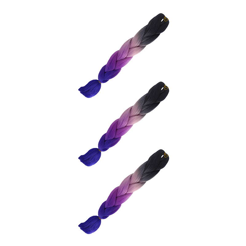Канекалон коса 60 см, 4 цвета: черный, розовый, фиолетовый, синий (Набор 3 шт.)