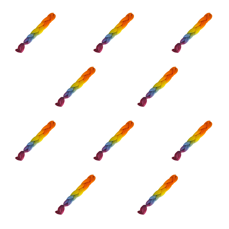 Канекалон коса 60 см, 4 цвета: оранжевый, желтый, голубой, малиновый (Набор 10 шт.)