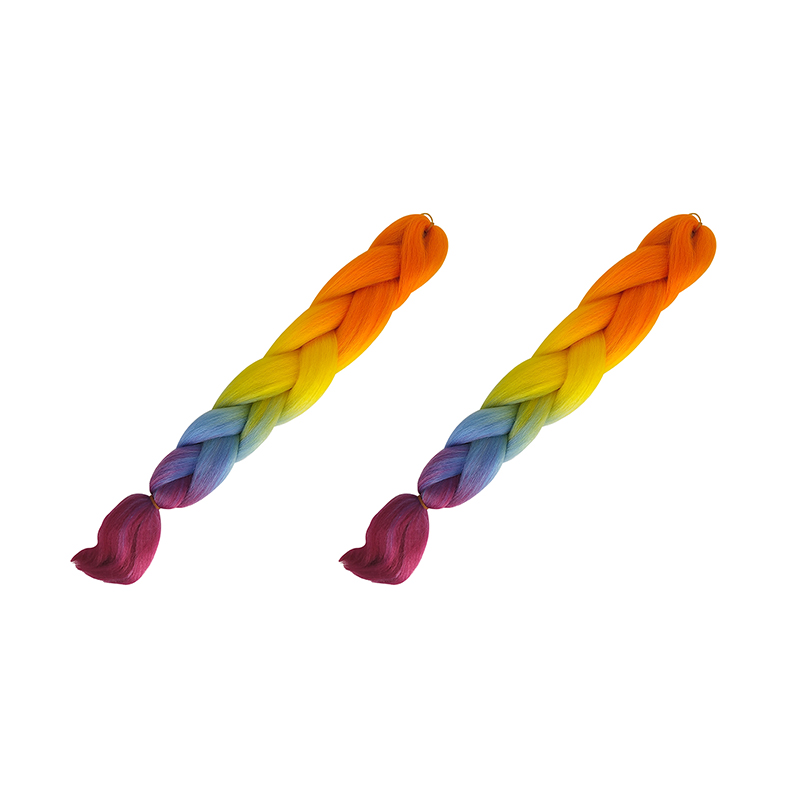 Канекалон коса 60 см, 4 цвета: оранжевый, желтый, голубой, малиновый (Набор 2 шт.)
