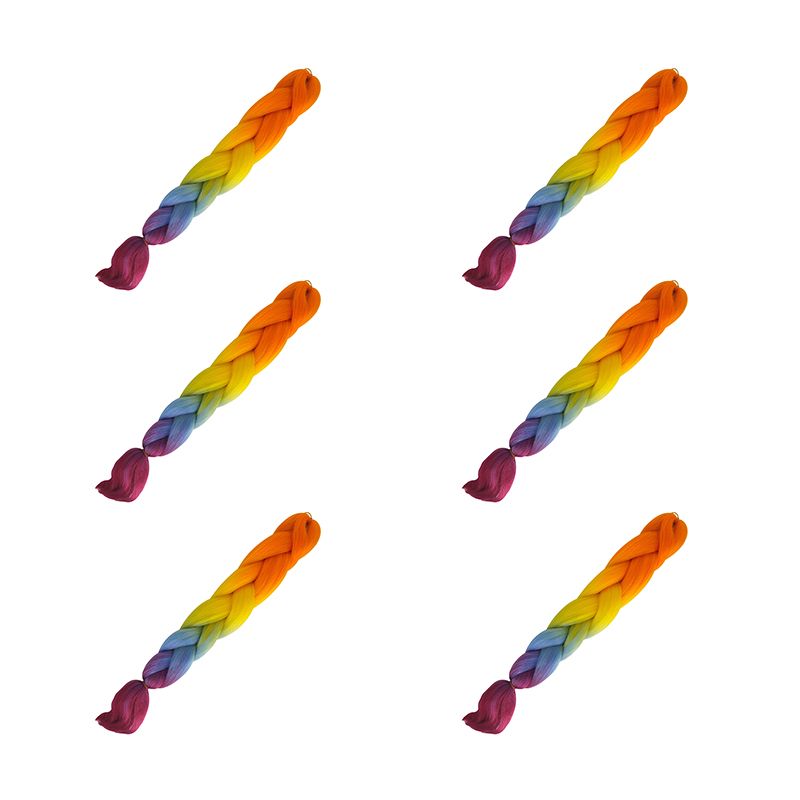Канекалон коса 60 см, 4 цвета: оранжевый, желтый, голубой, малиновый (Набор 6 шт.)