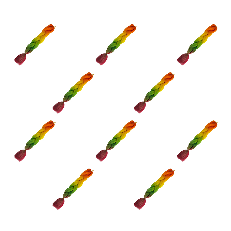 Канекалон коса 60 см, 4 цвета: оранжевый, желтый, зеленый, малиновый (Набор 10 шт.)