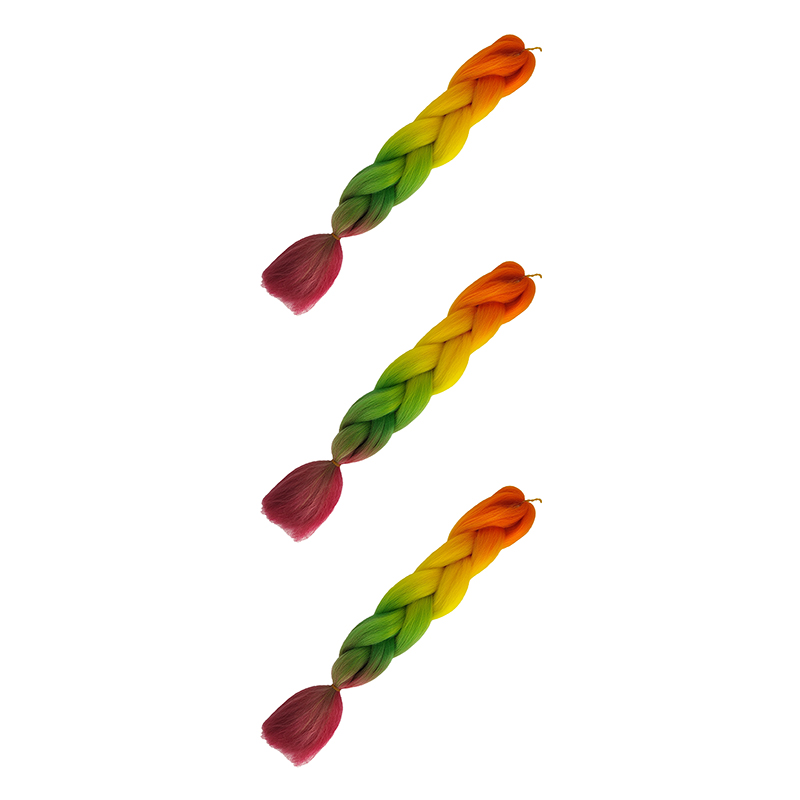 Канекалон коса 60 см, 4 цвета: оранжевый, желтый, зеленый, малиновый (Набор 3 шт.)