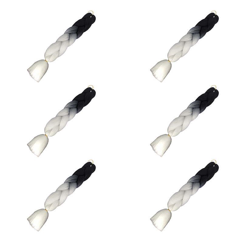 Канекалон коса 60 см, омбре из черного в белый (Набор 6 шт.)