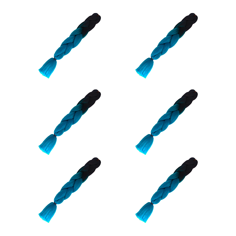 Канекалон коса 60 см, омбре из черного в голубой (Набор 6 шт.)