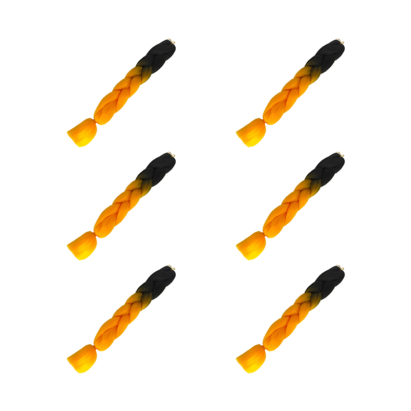 Канекалон коса 60 см, омбре из черного в оранжевый (Набор 6 шт.)