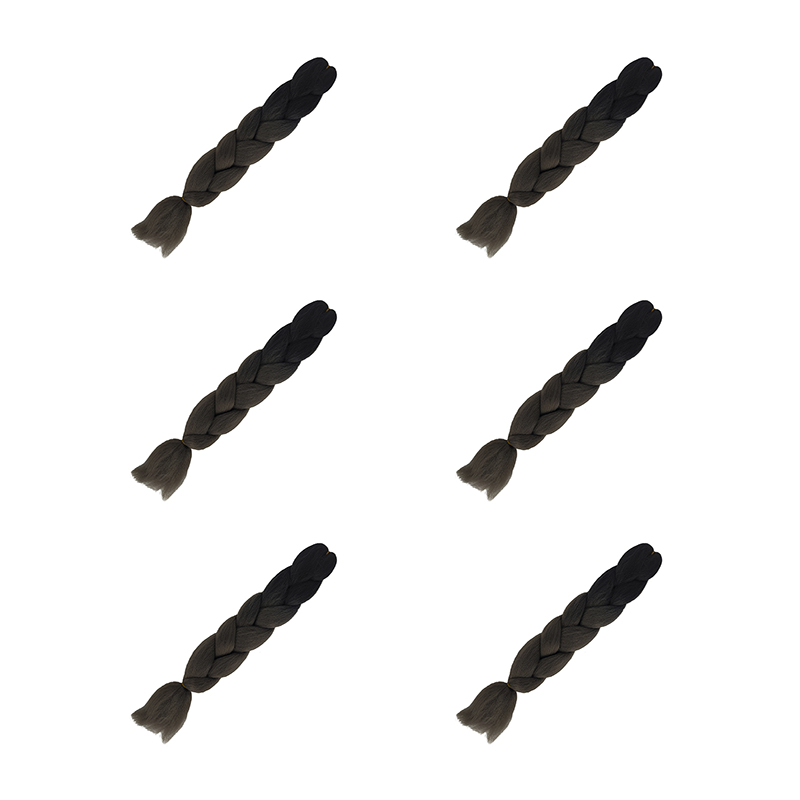 Канекалон коса 60 см, омбре из черного в темно-серый (Набор 6 шт.)