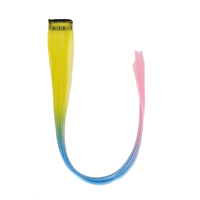 Прядь накладная на заколке 50 см, три цвета: желтый, голубой, розовый