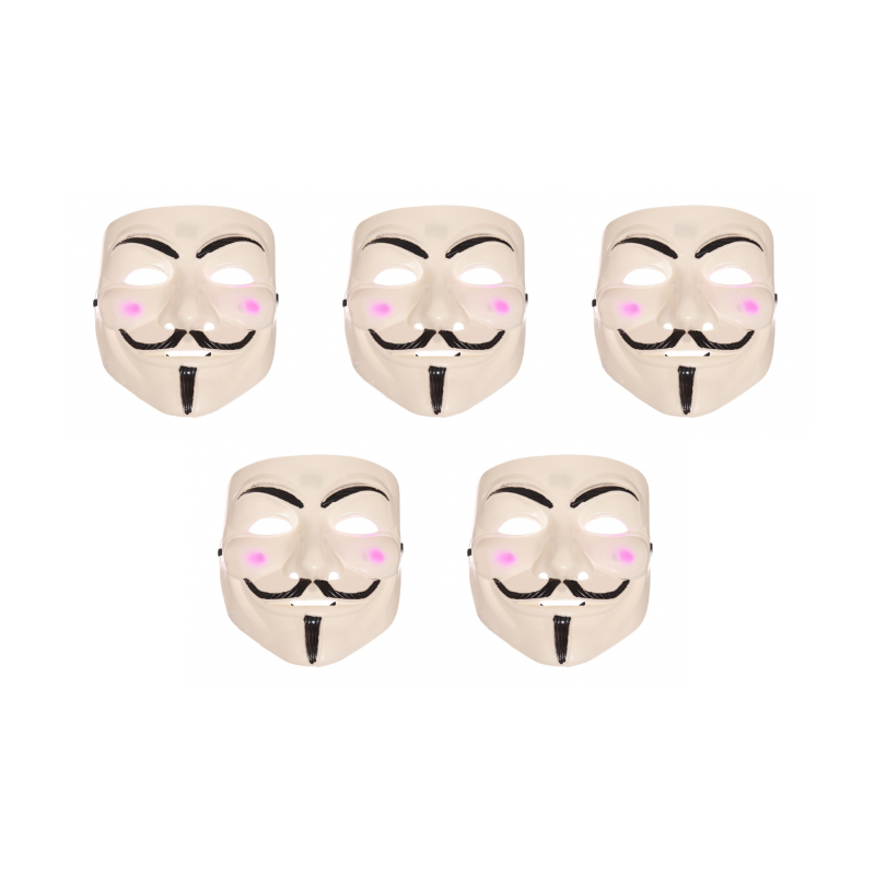 Карнавальная маска анонимуса "Гай Фокс" вендетта, цвет белый (Набор 5 шт.)