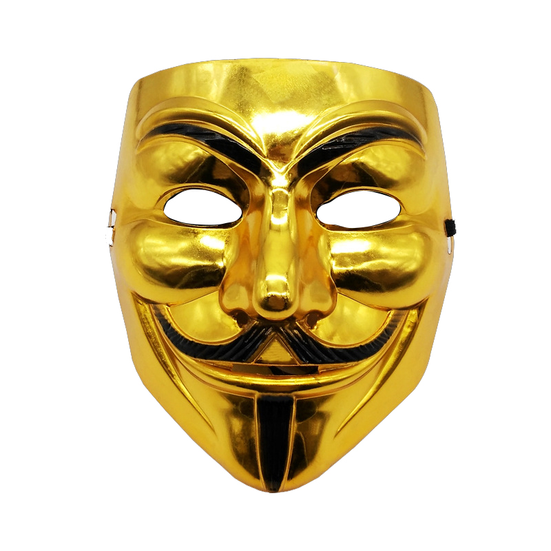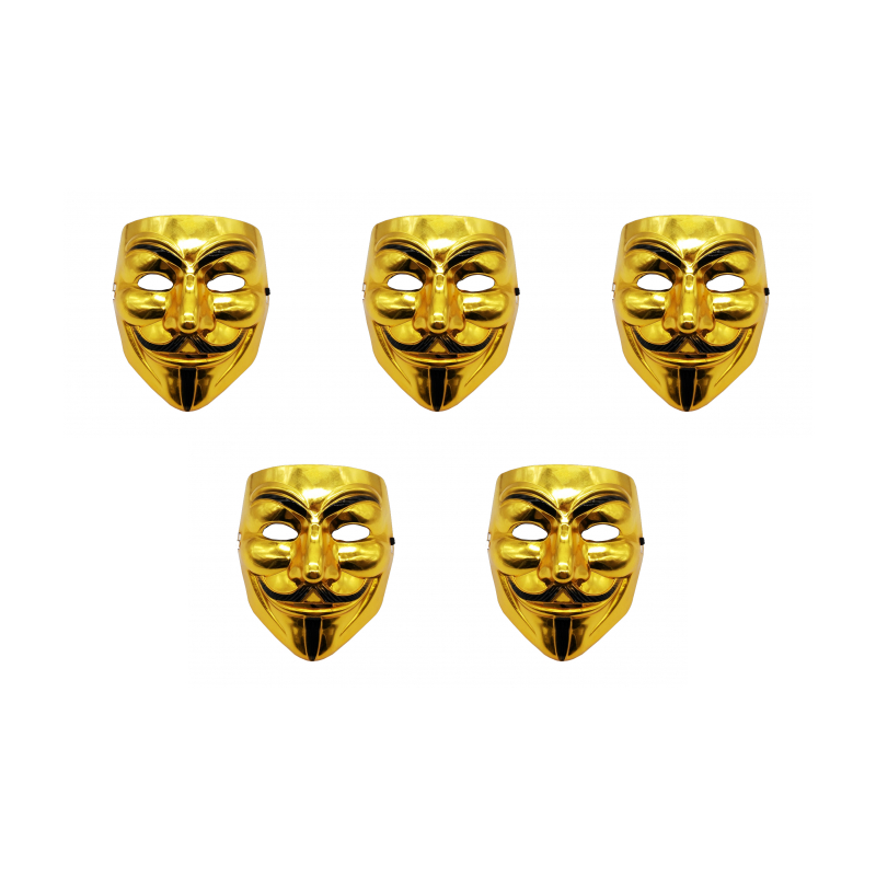 Карнавальная маска анонимуса "Гай Фокс" вендетта, цвет золотой (Набор 5 шт.)