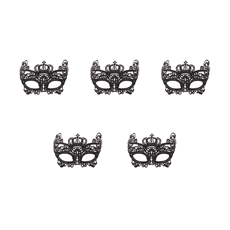 Карнавальная маска черная ажурная "Экзотика" кружевная (Набор 5 шт.)