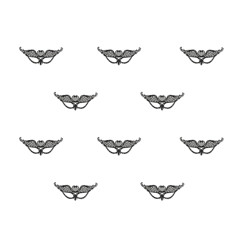 Карнавальная маска черная ажурная "Флирт" кружевная (Набор 10 шт.)