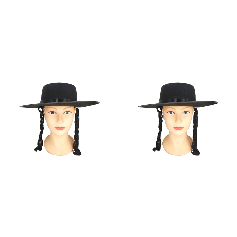 Карнавальная шляпа "Еврей пейсы" котелок еврейский с черными локонами (Набор 2 шт.)