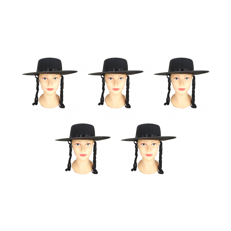 Карнавальная шляпа "Еврей пейсы" котелок еврейский с черными локонами (Набор 5 шт.)