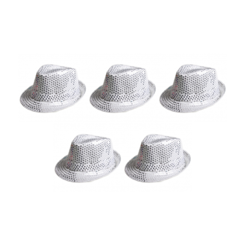 Карнавальная шляпа блестящая с пайетками "Диско", цвет белый (Набор 5 шт.)