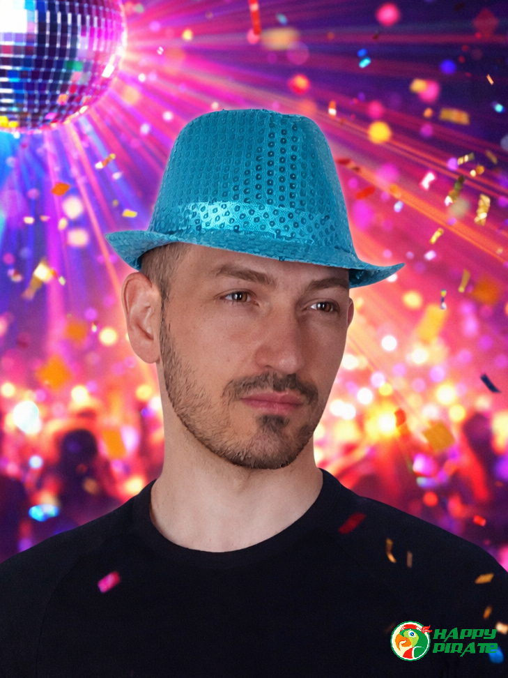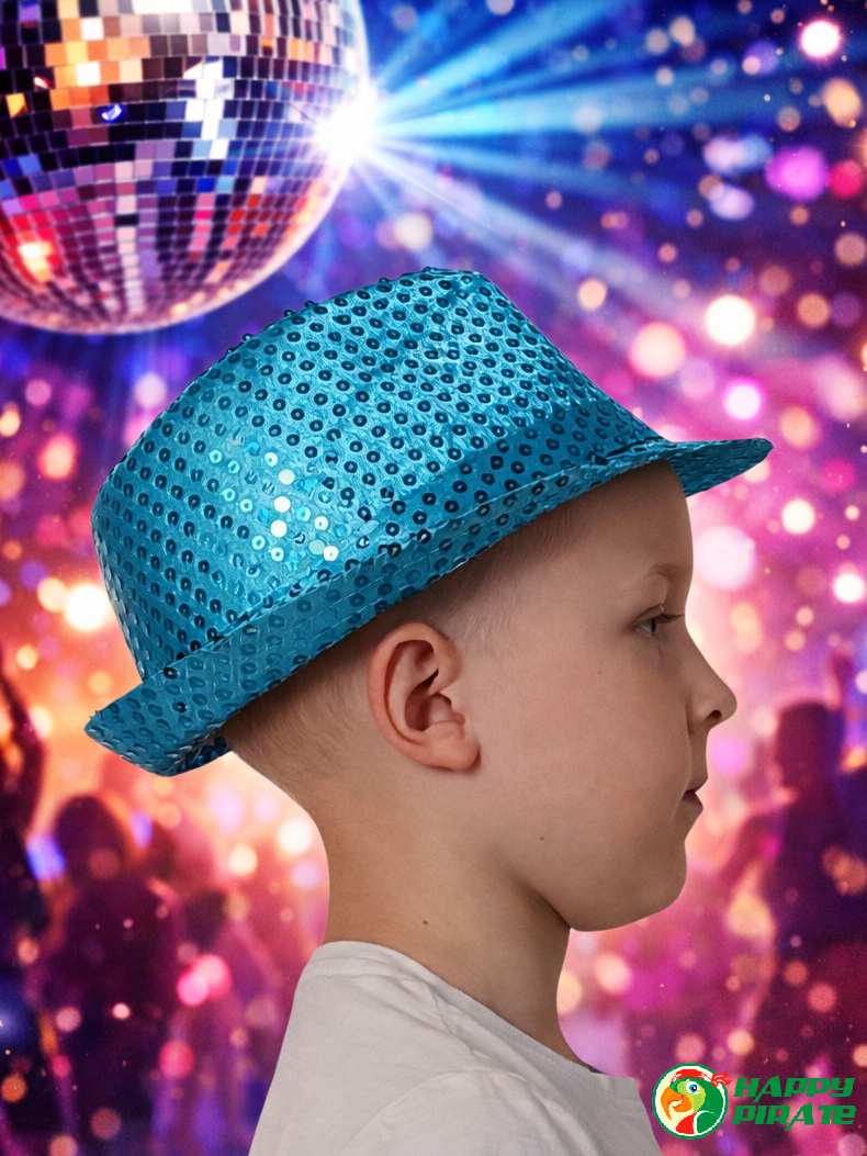 Карнавальная шляпа блестящая с пайетками "Диско", цвет голубой