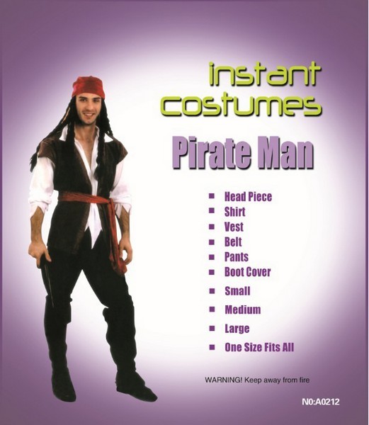 В каждом комплекте: бандана, рубашка, жилет, пояс, брюки, пиратские накладки на ботинки. Рост 176 см. Размер 46 - 50