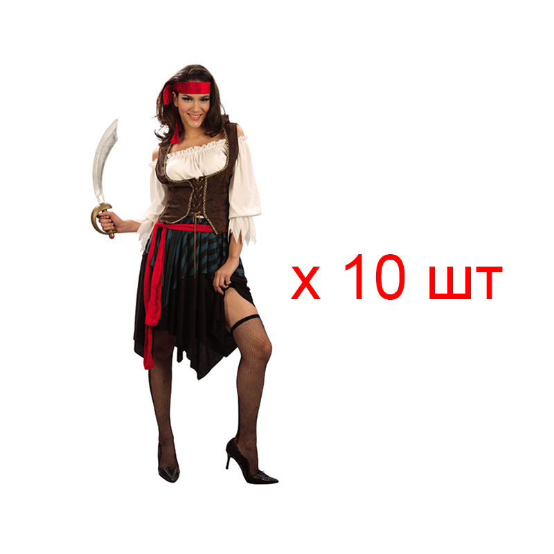 Карнавальный костюм пиратский женский "Пиратка": рубашка, юбка, жилетка, пояс, повязка пирата, р 44-46 (10 костюма в наборе)