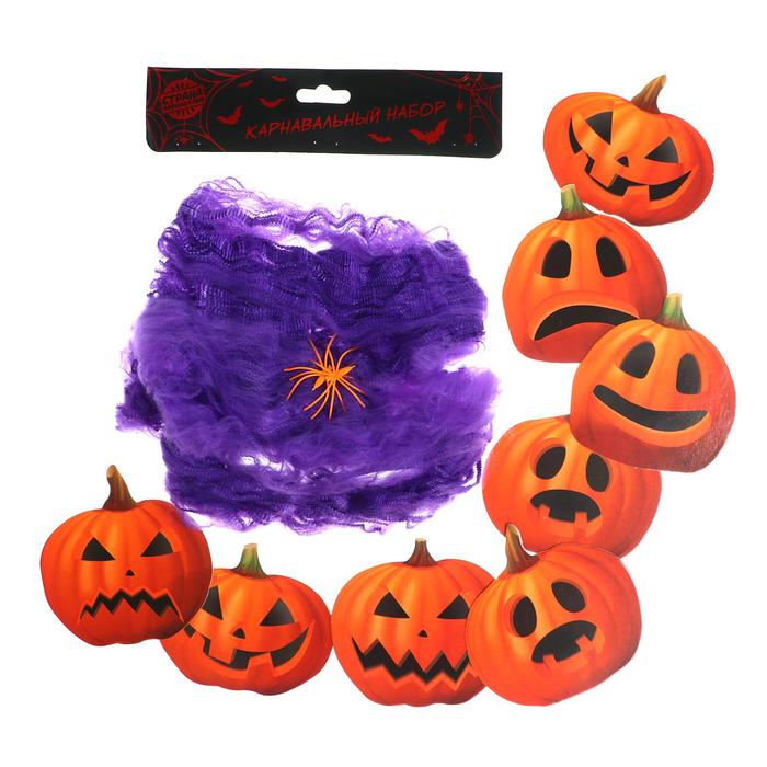 Карнавальный набор На хэллоуин "Тыквы Halloween", паутина, декор (2 набора в комплекте)