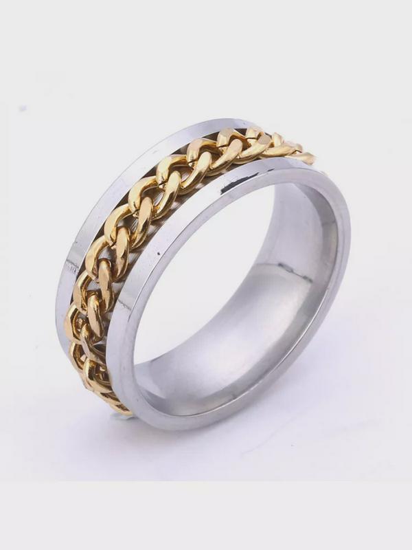 Кольцо антистресс унисекс из нержавеющей стали с вращающейся цепочкой, обхват 59,5 мм, цвет серебристый, золотистый
