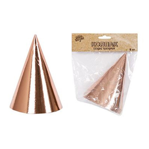 Колпак фольгированный розовое золото, набор 12 шт.