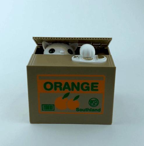 Забавная копилка с кошечкой, ворующей монетки! Стоит только положить монетку на "тарелочку", как тут же из копилки появится кошечка и лапкой "украдет" монетку! Размер одной копилки: 12см х 10см х 9см