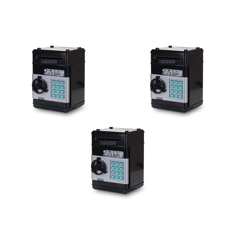 Копилка "Сейф" черная интерактивная, банкомат для денег и монет с замком и купюроприемником (Набор 3 шт.)