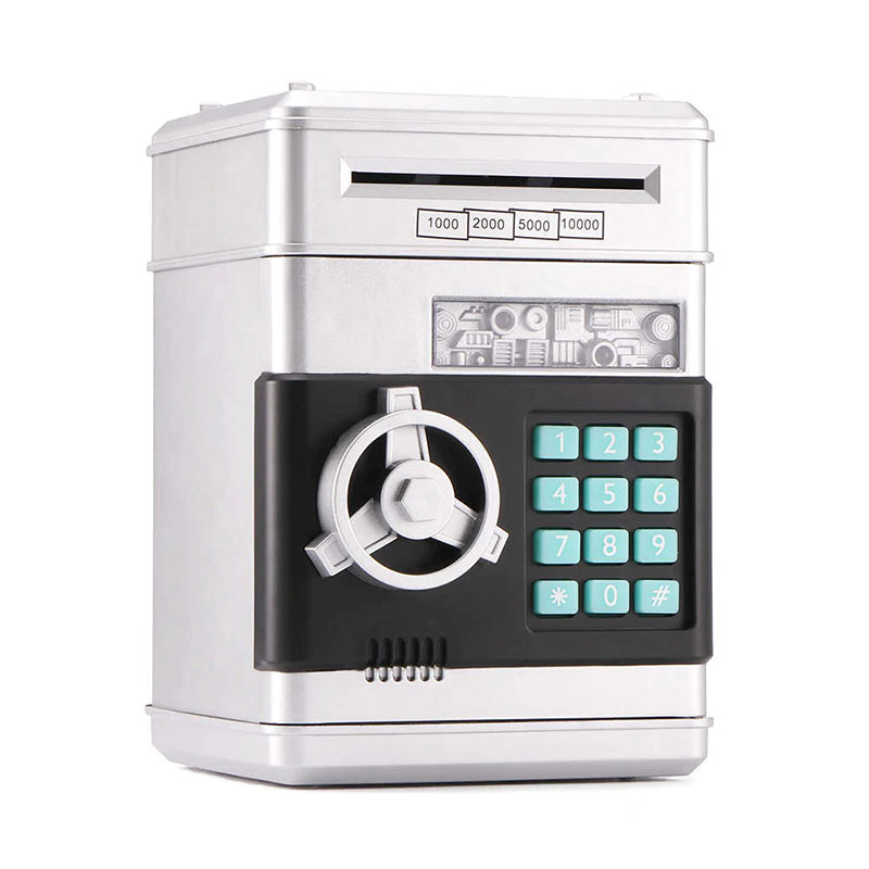 Копилка "Сейф" серебряная интерактивная, банкомат серебристый для денег и монет с замком и купюроприемником (Набор 2 шт.)