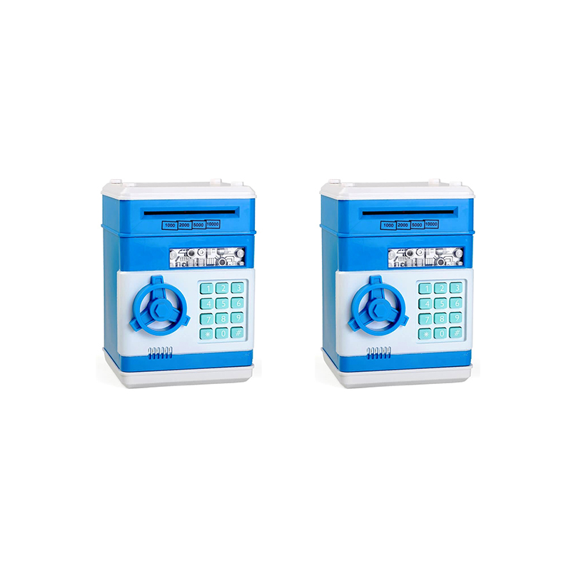 Копилка "Сейф" синяя голубая интерактивная, банкомат для денег и монет с замком и купюроприемником (Набор 2 шт.)