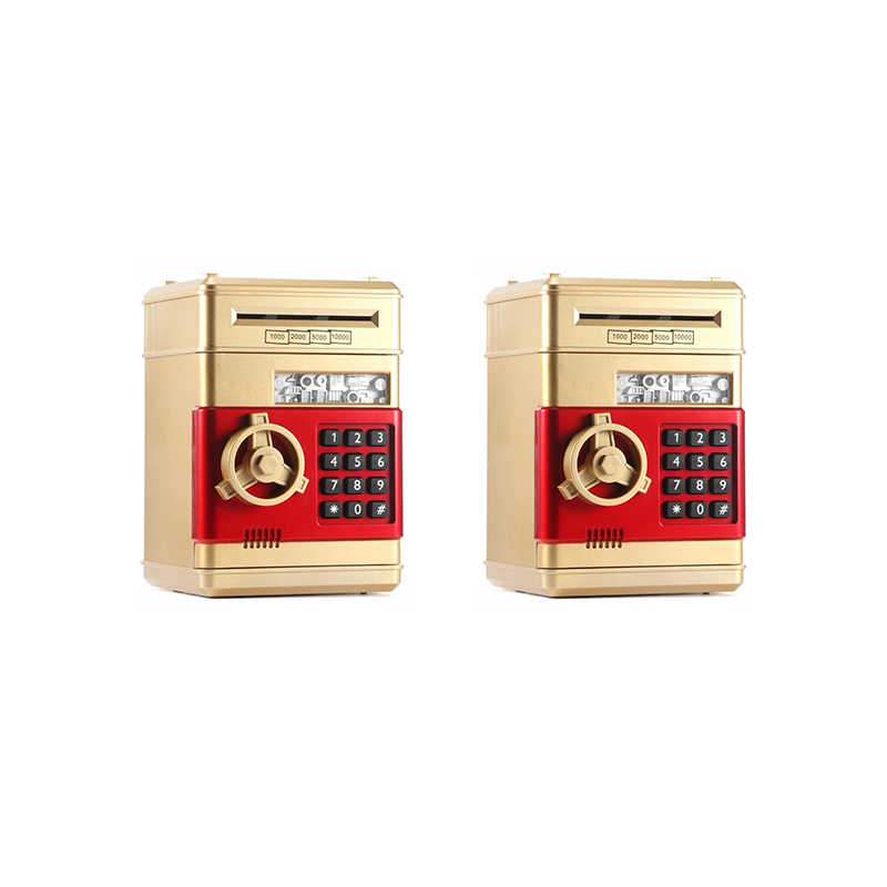 Копилка "Сейф" золотая интерактивная, банкомат золотистый для денег и монет с замком и купюроприемником (Набор 2 шт.)