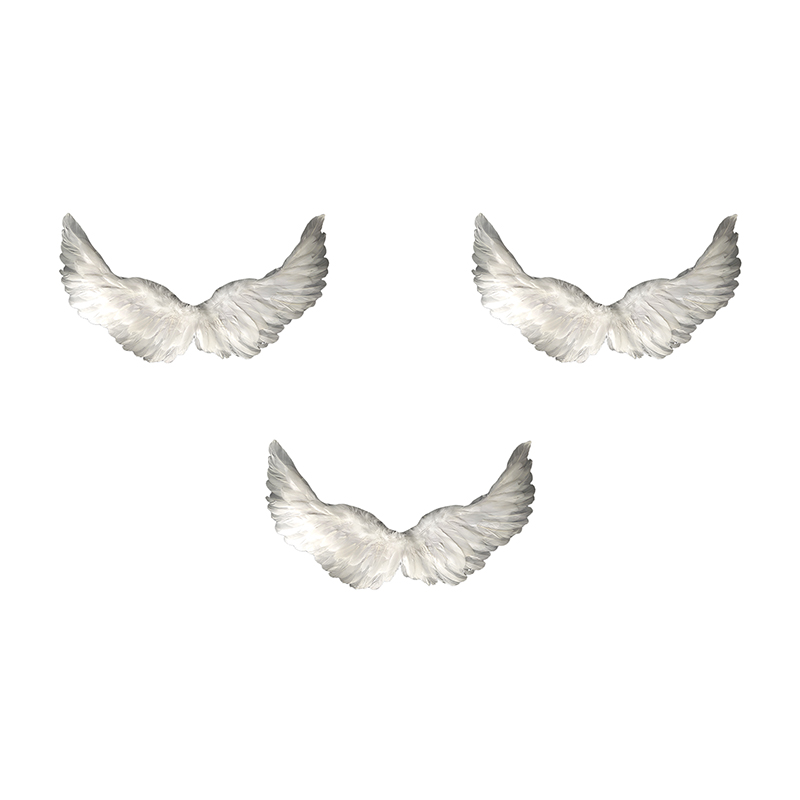 Крылья ангела белые перьевые карнавальные большие 60х35см, на Хэллоуин и Новый год (3 пары в наборе)
