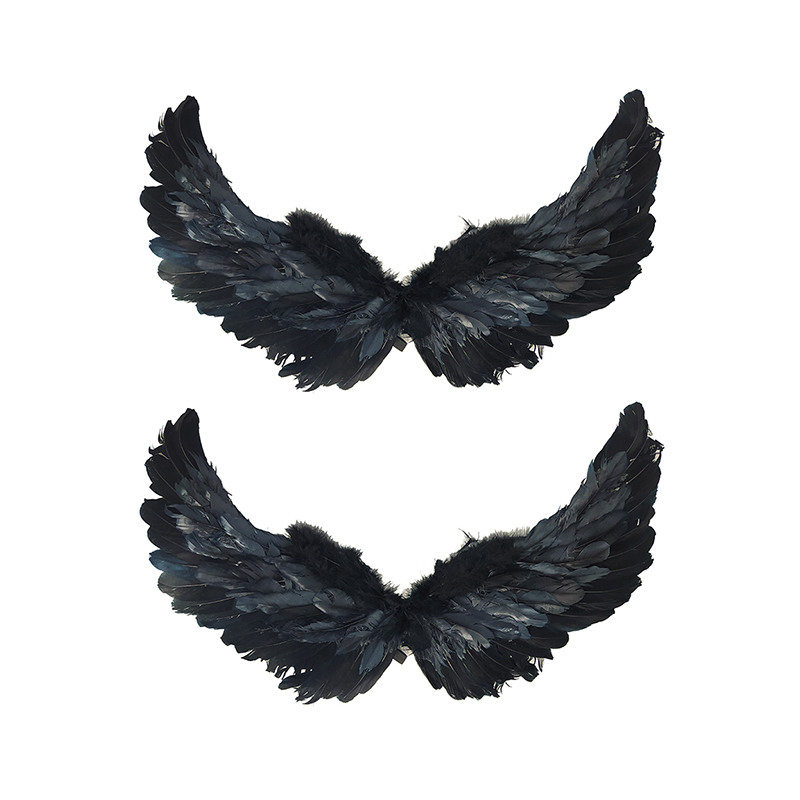 Крылья ангела черные перьевые карнавальные большие 60х35см, на Хэллоуин и Новый год (2 пары в наборе)
