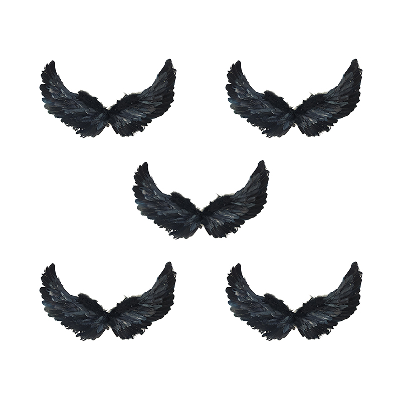 Крылья ангела черные перьевые карнавальные большие 60х35см, на Хэллоуин и Новый год (5 пар в наборе)