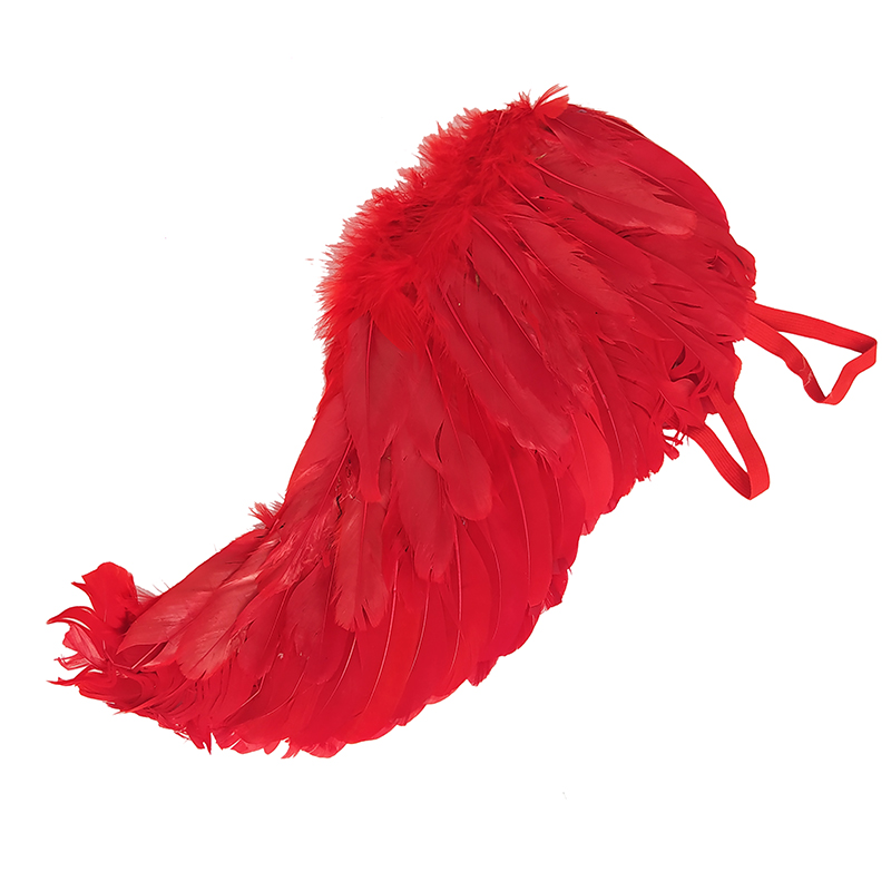 Крылья ангела красные перьевые карнавальные большие 60х35см, на Хэллоуин и Новый год (2 пары в наборе)