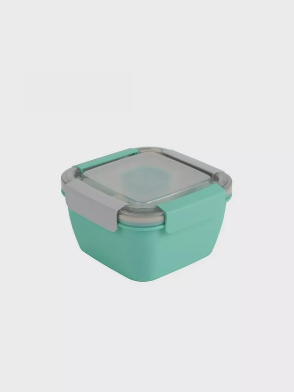 Ланчбокс "Квадрат" с двумя отделами, с соусницей, со съемной перегородкой, с ложкой-вилкой, объем 1500 мл, размер 17,3х9 см, цвет зеленый - Купить по цене 1544.00 руб. Корзина 0