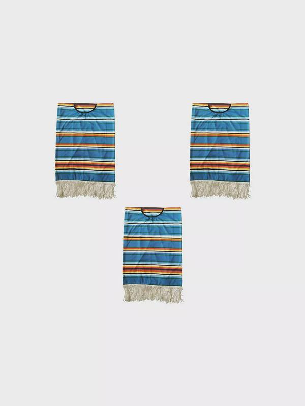 Мексиканское пончо, синие полоски (Набор 3 шт.)