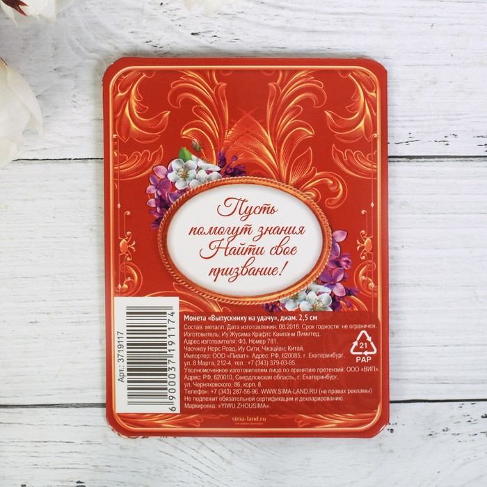 Монета "Выпускнику на удачу", d 2,5 см (Набор 10 шт.)