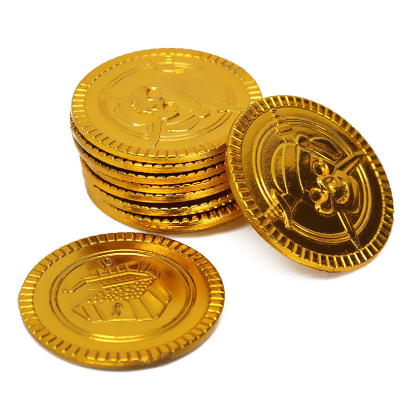 Монеты золотые пиратские "Сокровища пирата" пиастры клад (Набор 60 шт.)