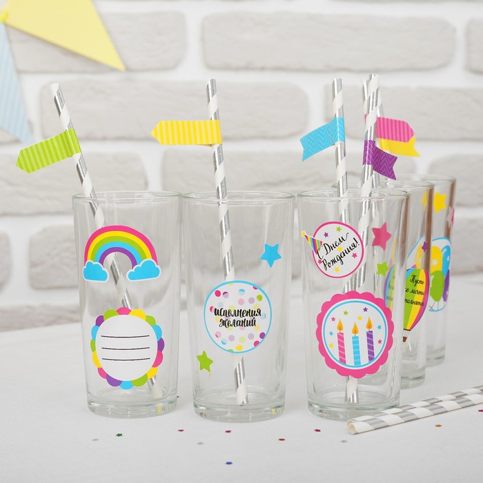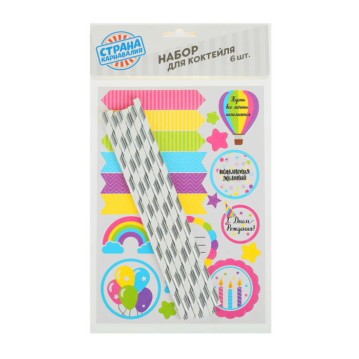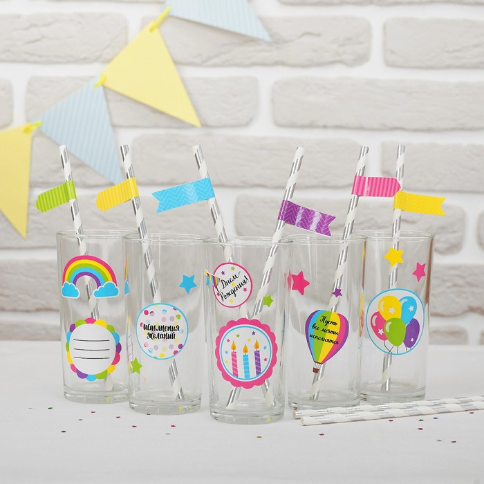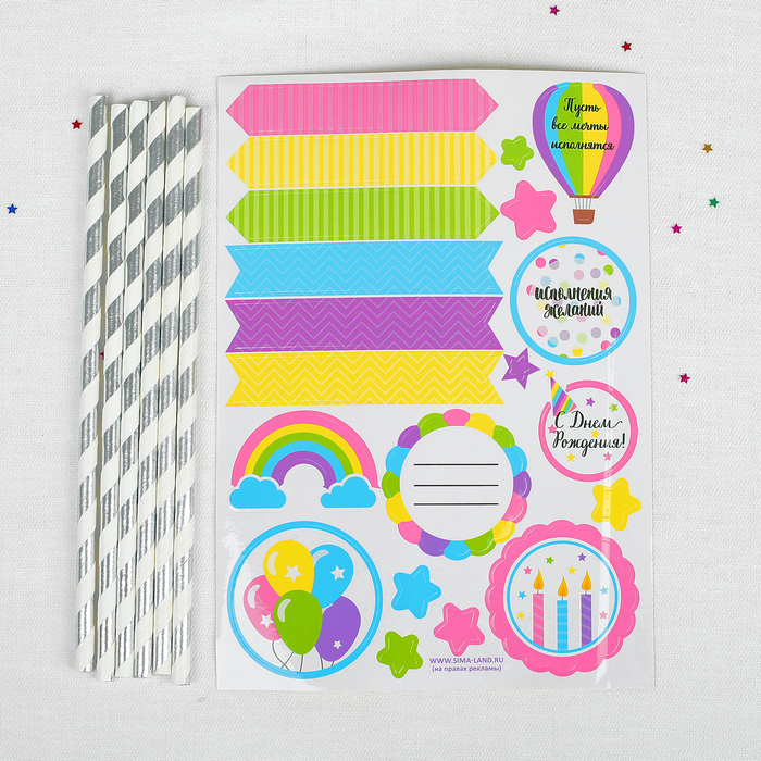 Набор для коктейля "Исполнения желаний день рождения" (Набор наклейки и трубочки 30 шт.)